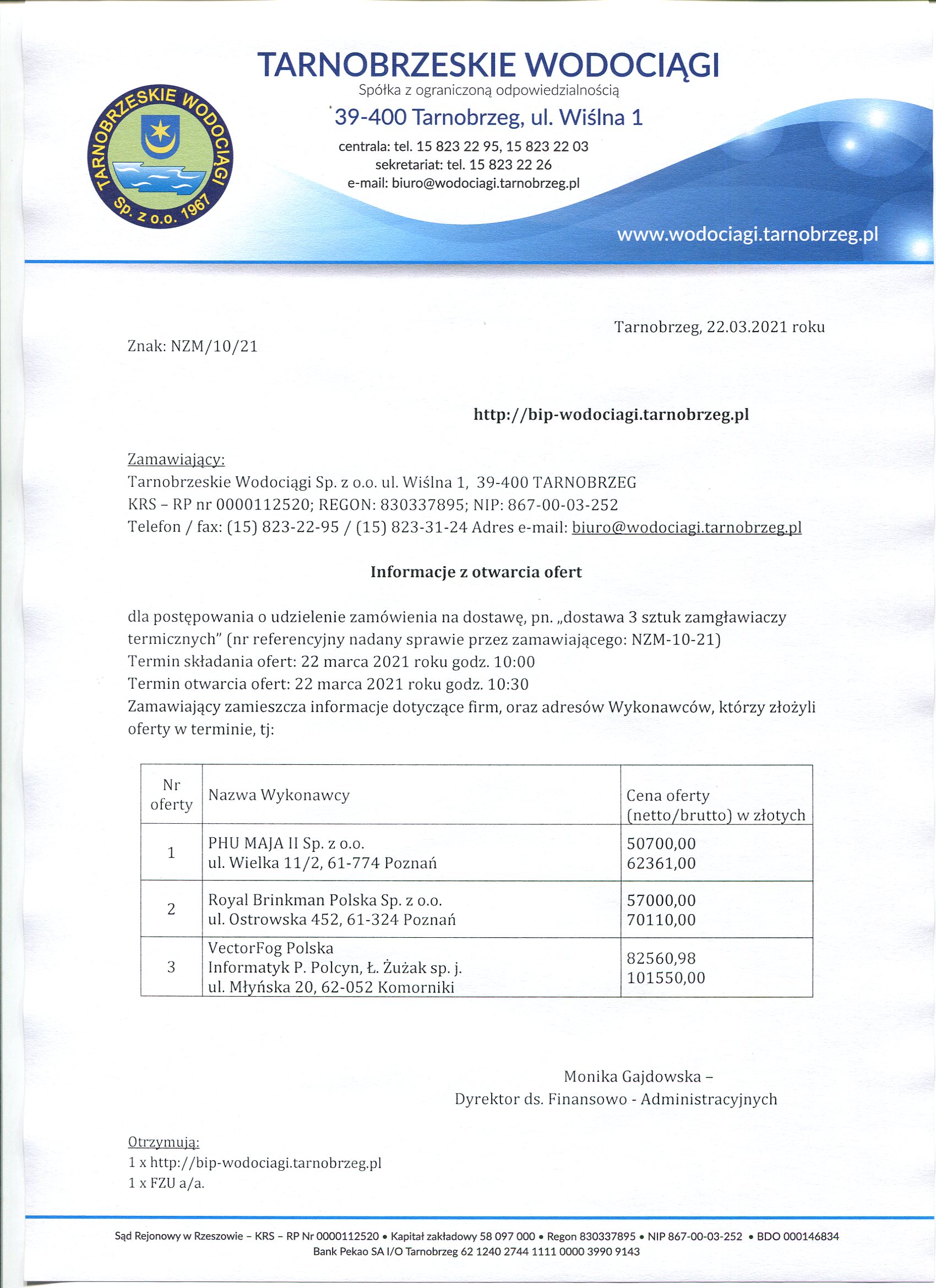 Zapytanie ofertowe z dnia 12 marca 2021 roku na: Dostawa zamgławiaczy termicznych