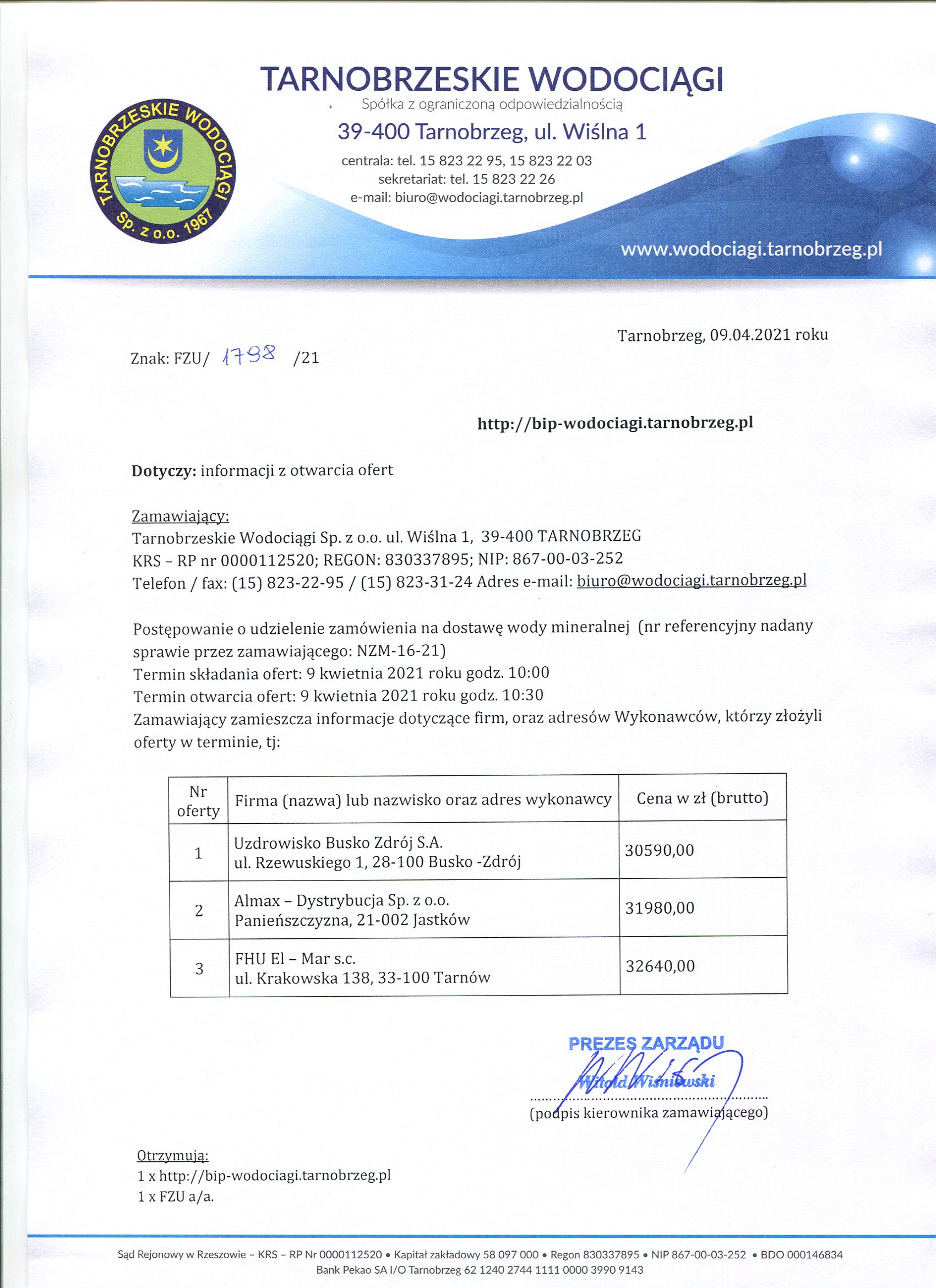 - Informacja z otwarcia ofert: Informacja z otwarcia ofert