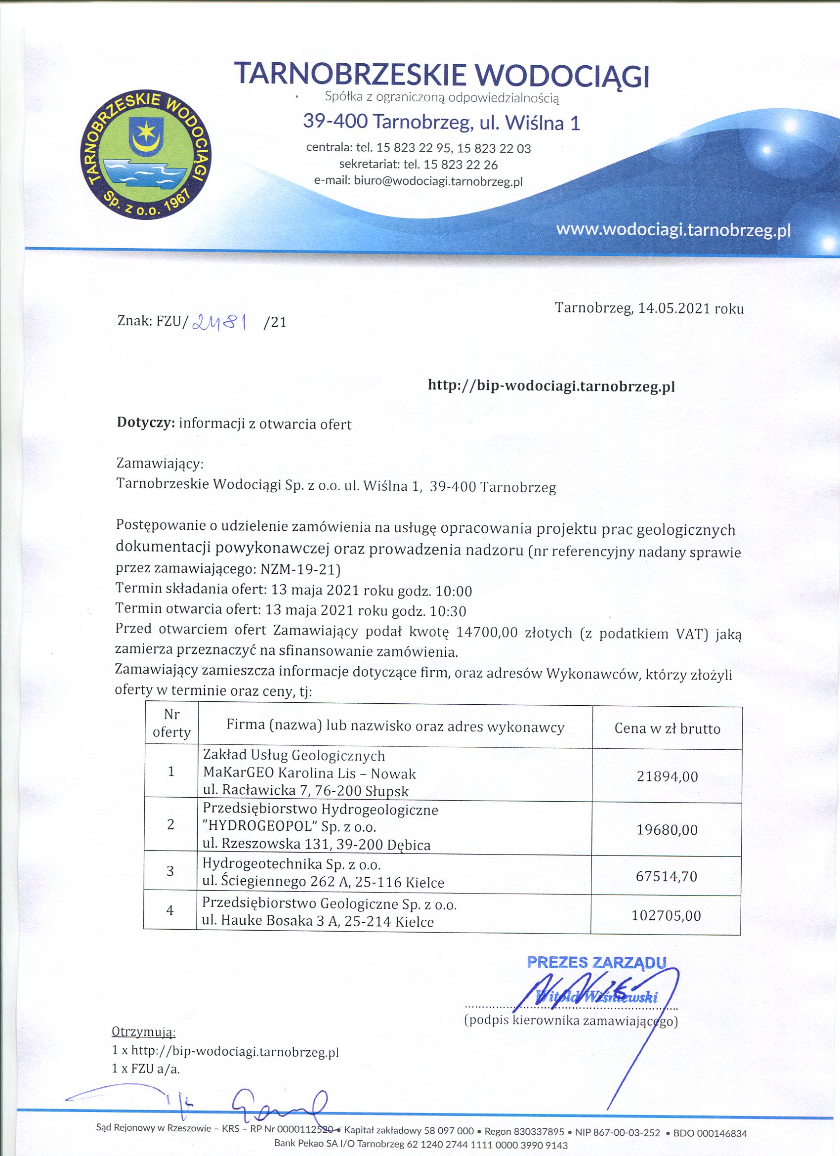 - Informacja z otwarcia ofert: Informacja z otwarcia ofert