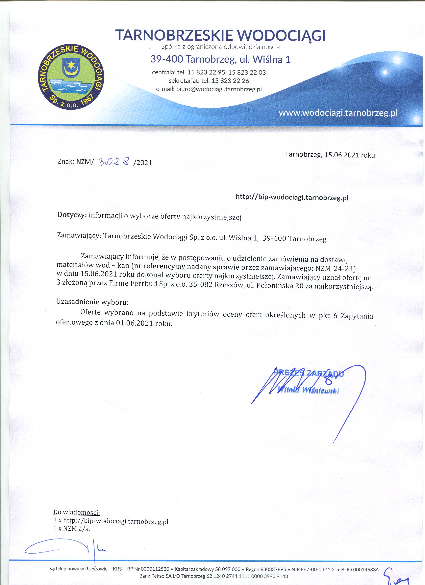 Zapytanie ofertowe z dnia 1 czerwca 2021 roku na: Dostawa materiałów wod - kan