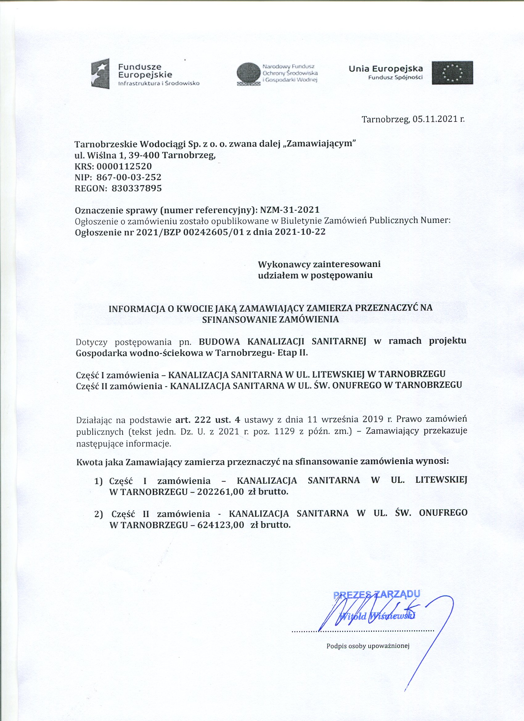 NZM-31-21 Budowa kanalizacji sanitarnej w ramach projektu Gospodarka wodno-ściekowa w Tarnobrzegu- Etap II
