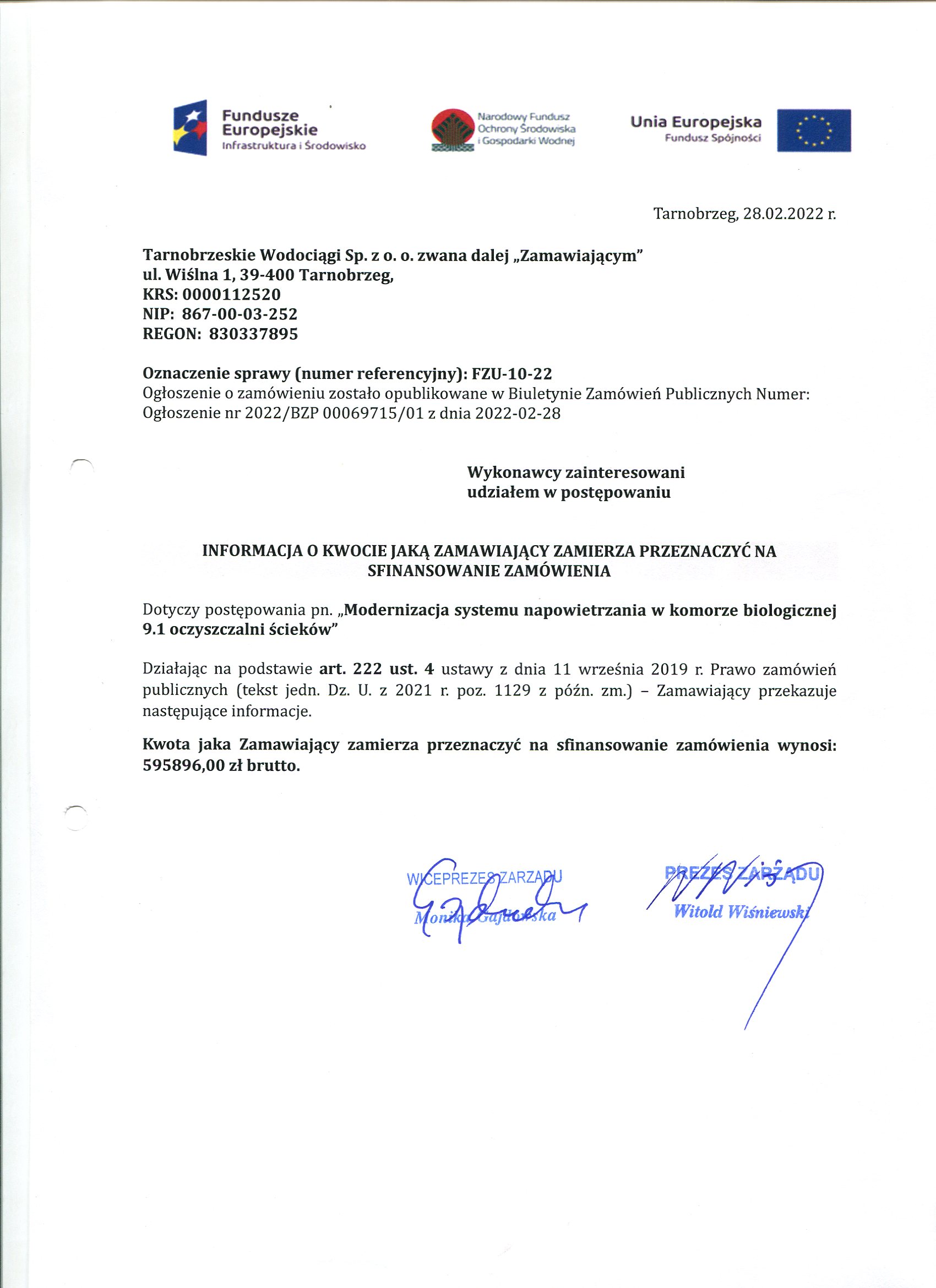 - informacja o kwocie zamówienia: FZU-10-22 Informacja o kwocie zamówienia