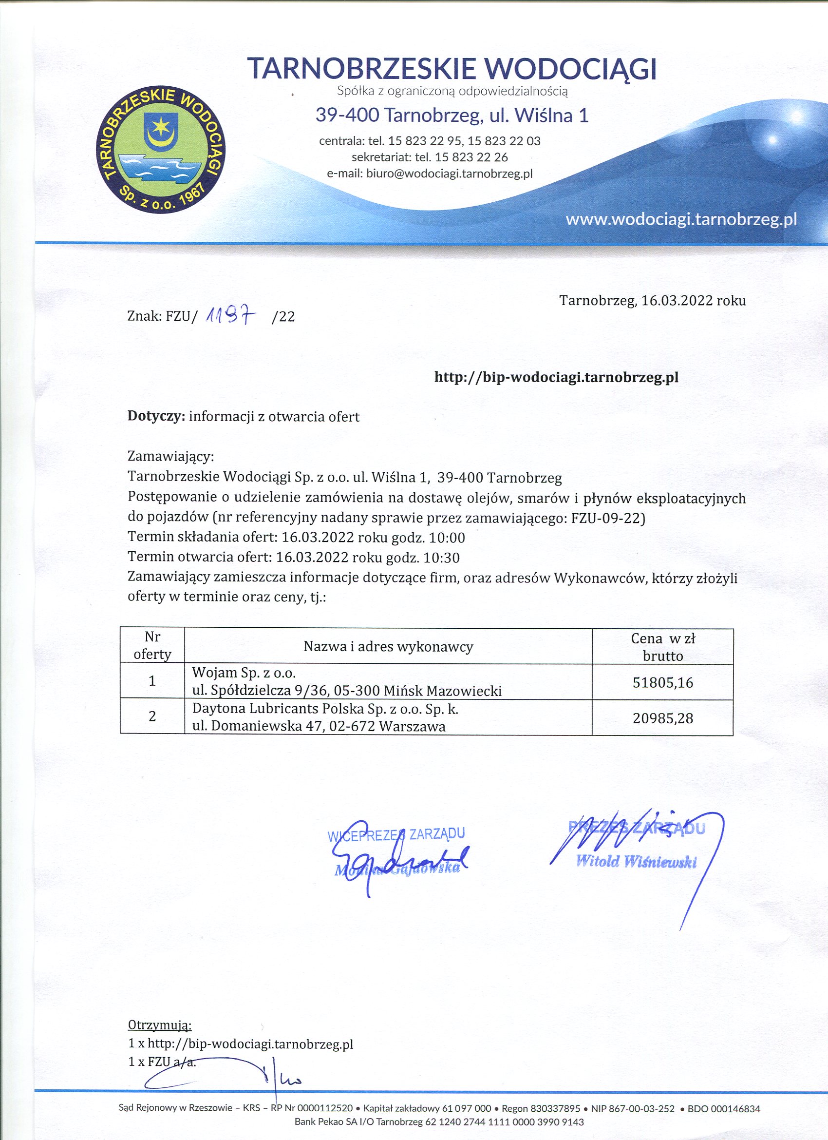 - Informacja z otwarcia ofert: FZU-09-22 Informacja z otwarcia ofert