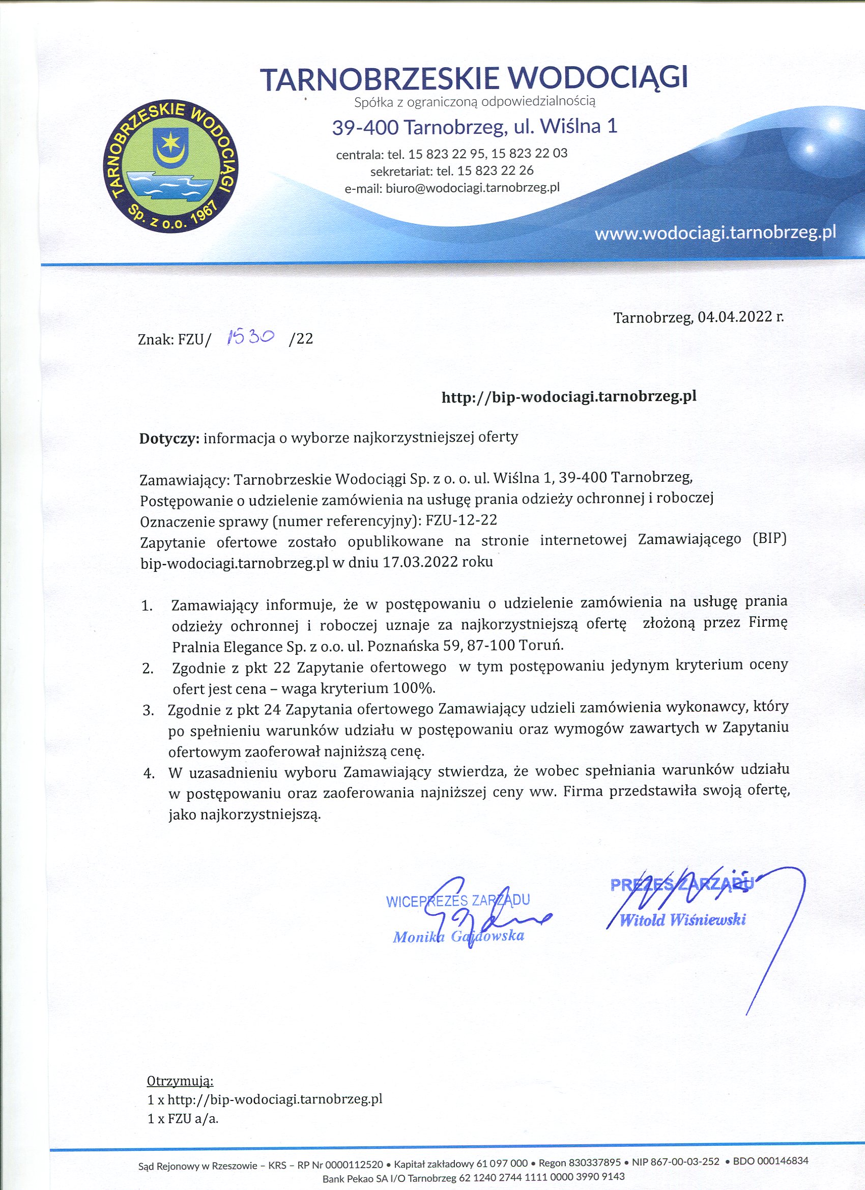 - Wybór najkorzystniejszej oferty: FZU-12-22 Wybór najkorzystniejszej oferty