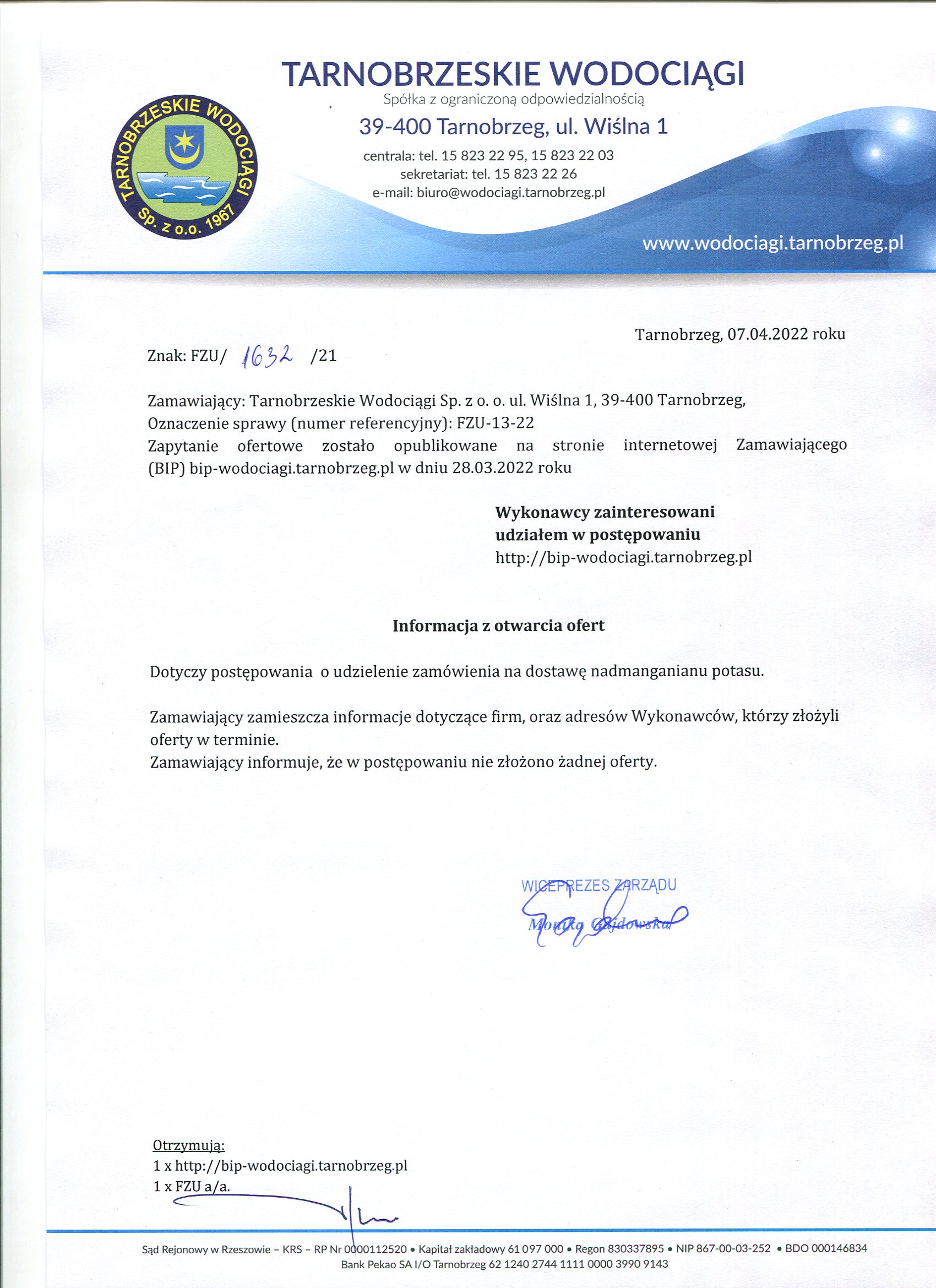 - Informacja z otwarcia ofert: FZU-13-22 Informacja z otwarcia ofert