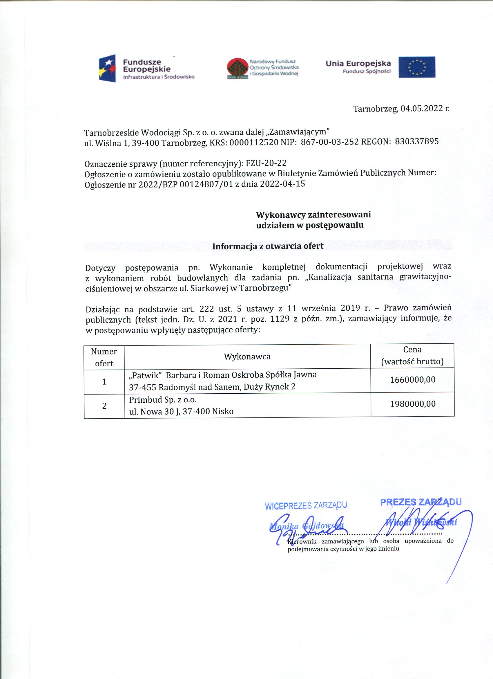 - informacja z otwarcia ofert: FZU-20-22 Informacja z otwarcia ofert