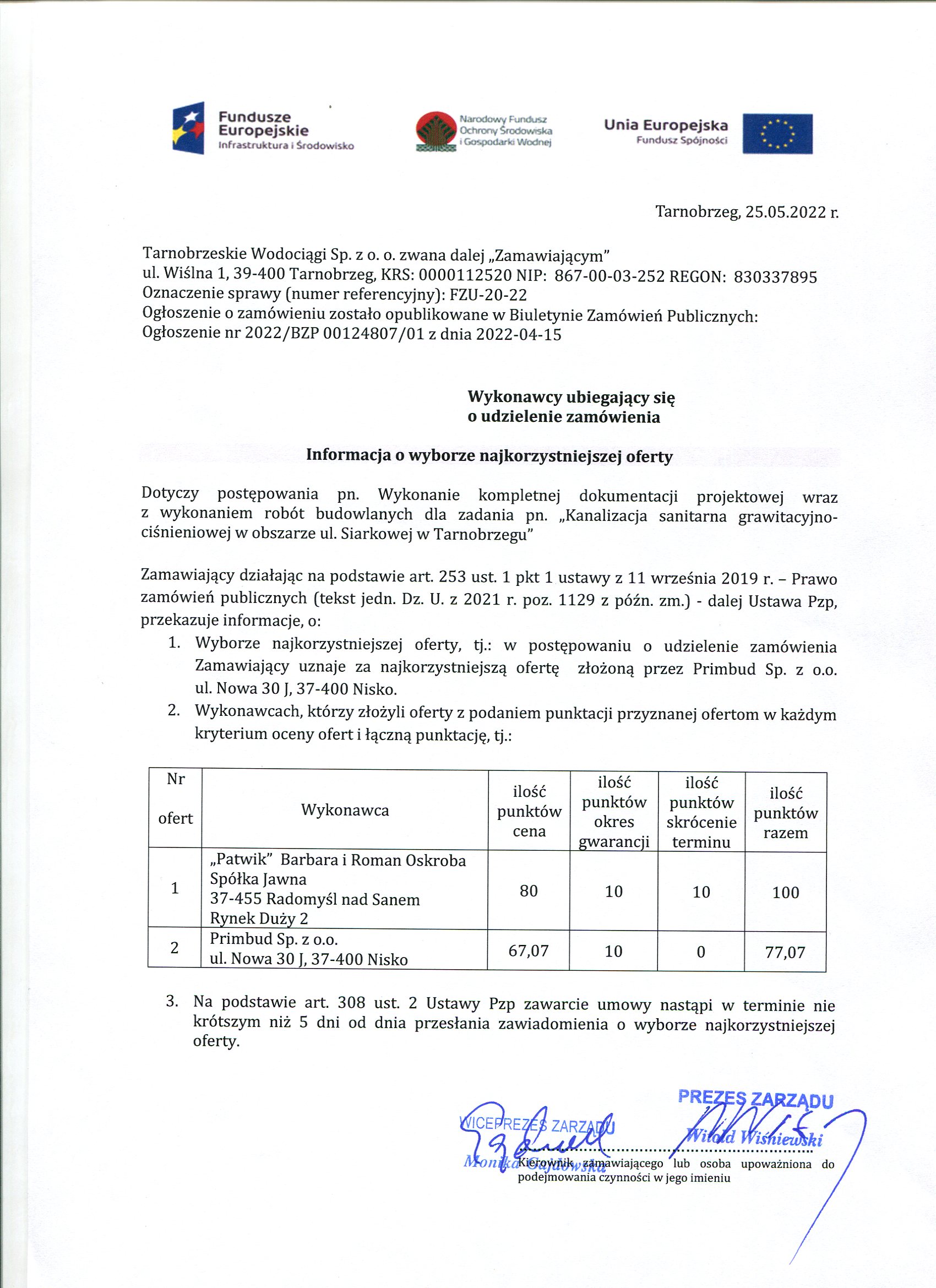 - Informacja o wyborze oferty: FZU-20-22 Informacja o wyborze oferty