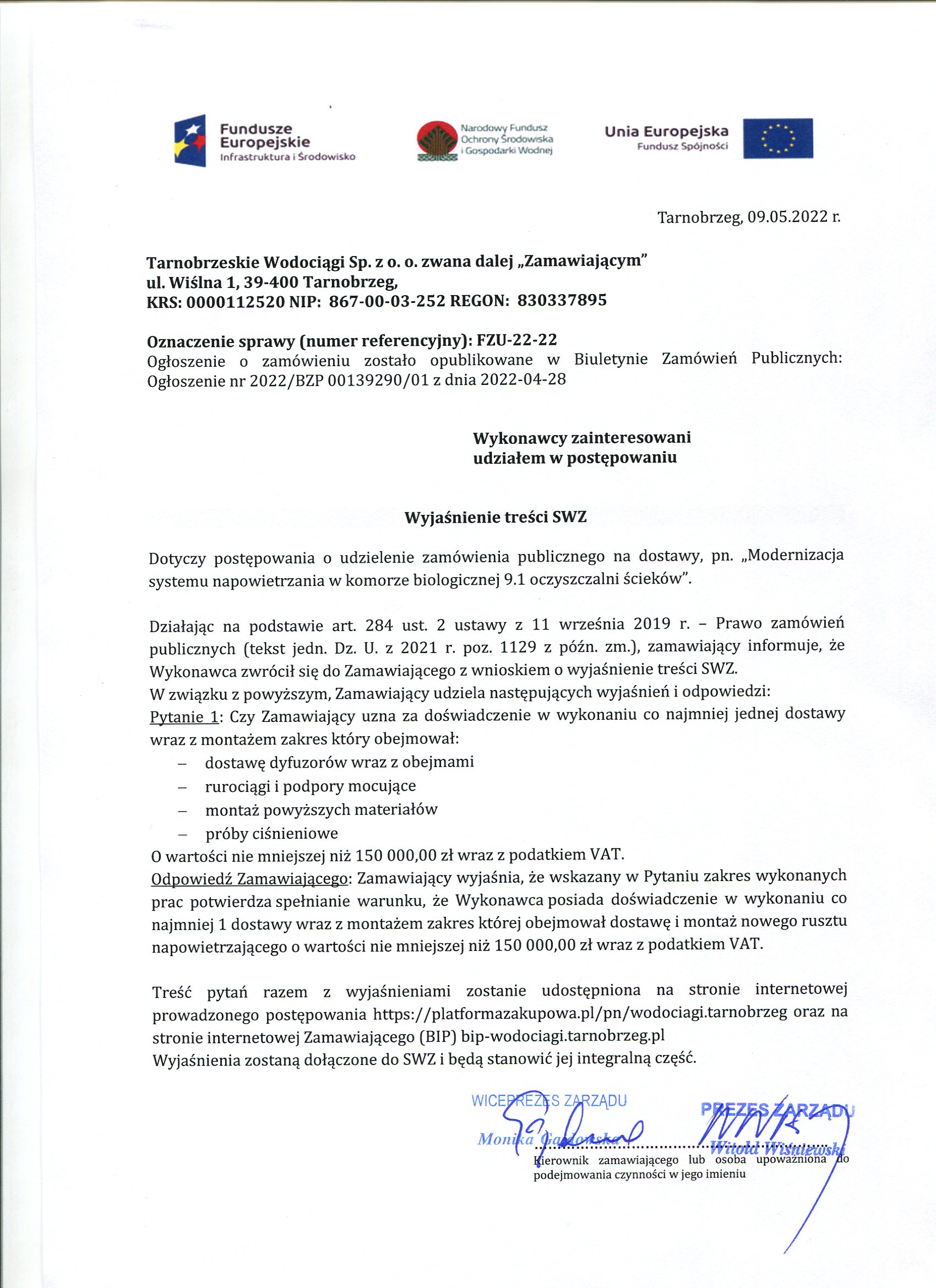 - wyjaśnienie treści SWZ: FZU-22-22 Wyjaśnienie treści SWZ