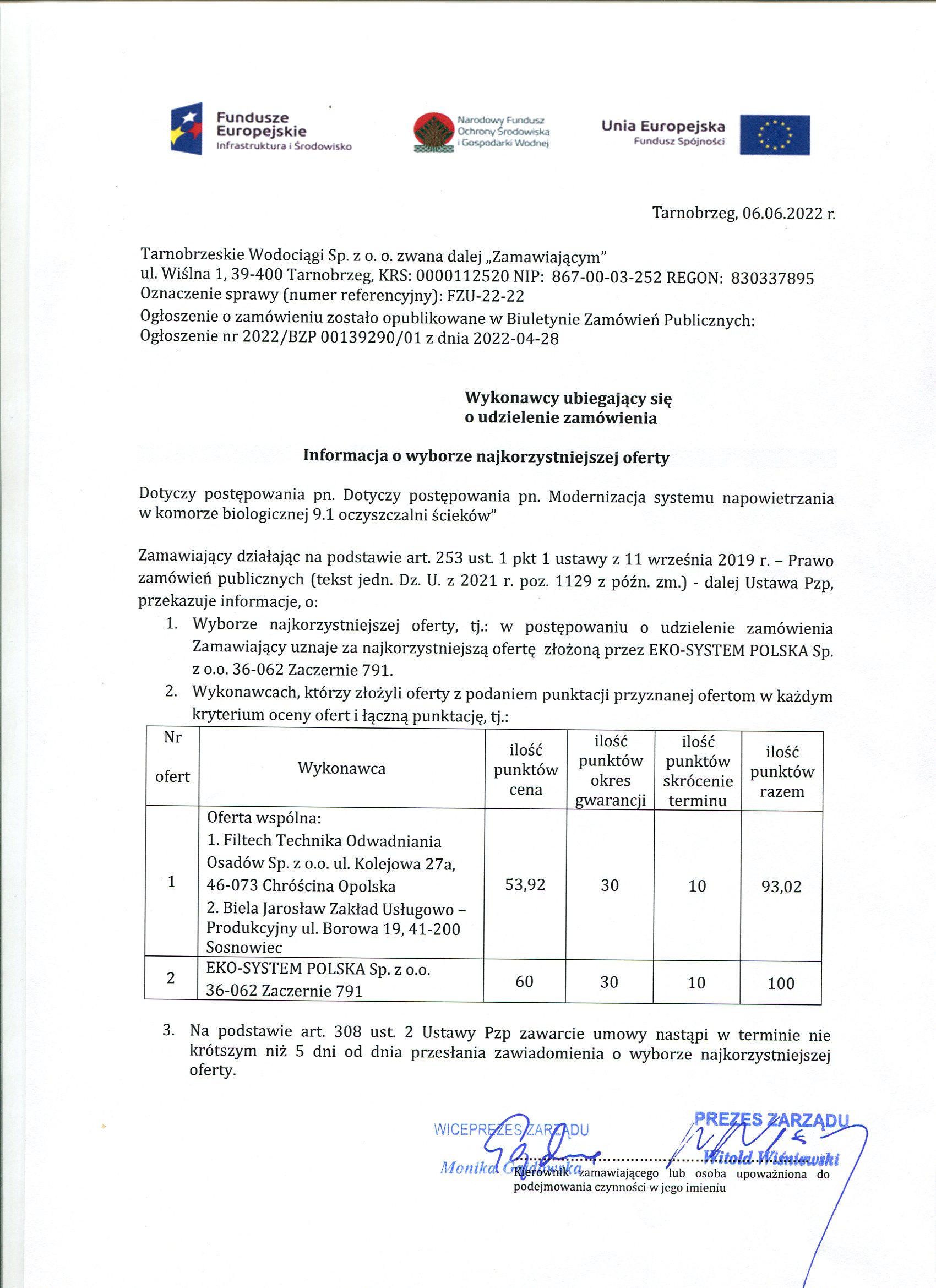 - Informacja o wyborze najkorzystniejszej oferty: FZU-22-22 Informacja o wyborze najkorzystniejszej oferty