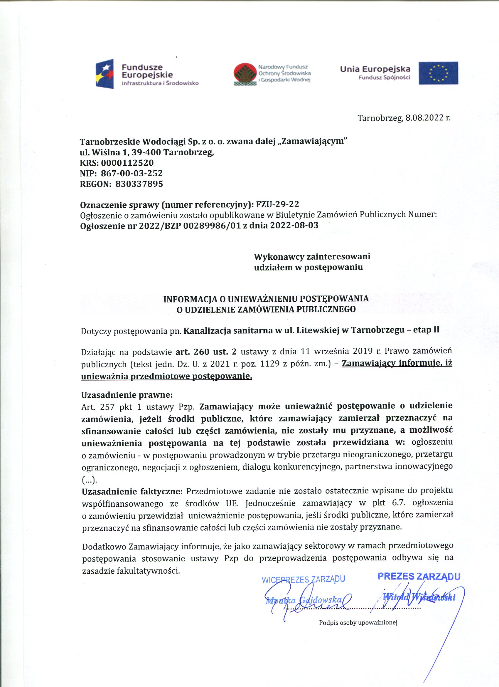 - informacja o unieważnieniu postepowania: FZU-29-22 Informacja o unieważnieniu postepowania