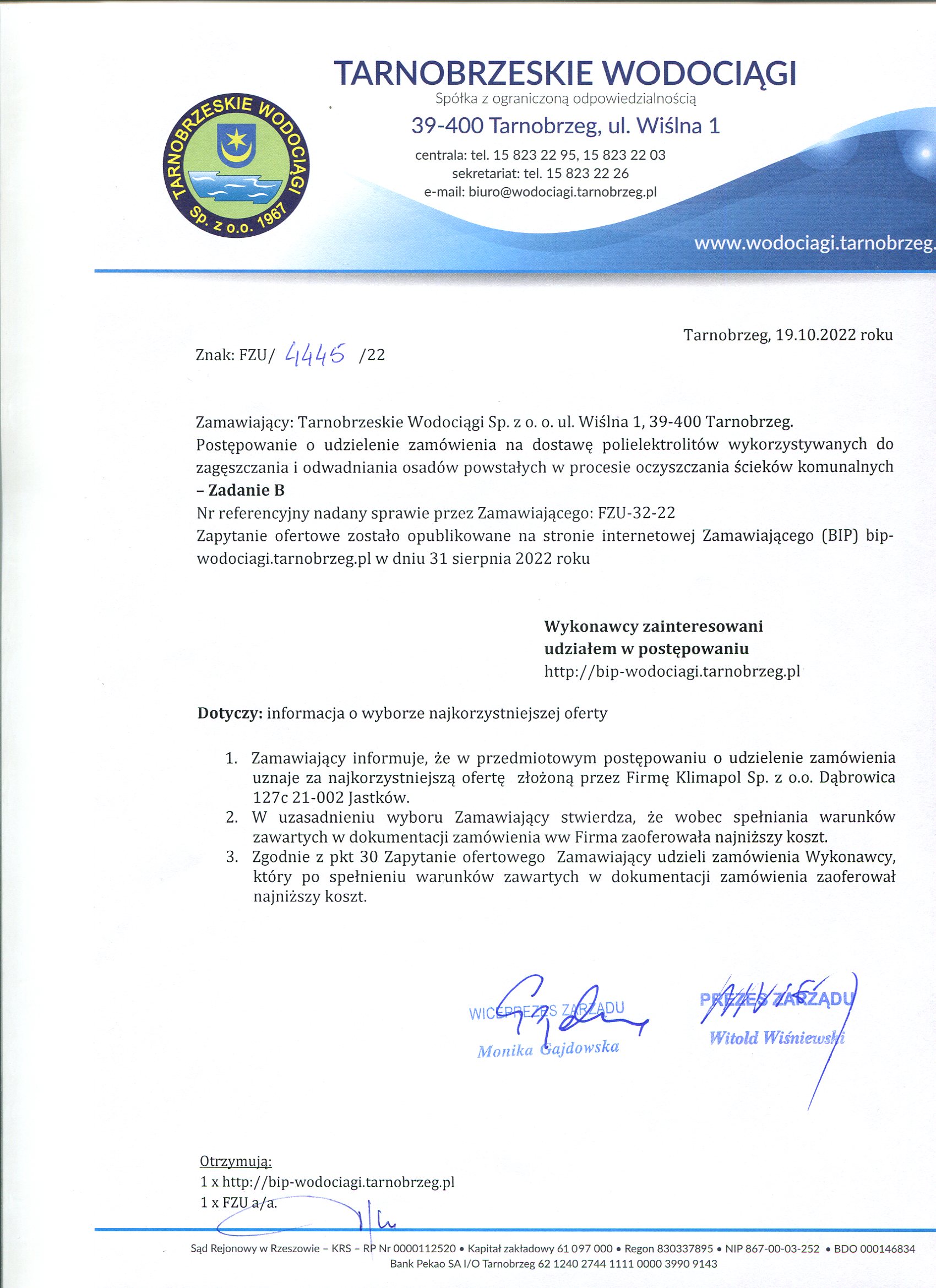 - informacja o wyborze oferty: FZU-32-22 Informacja o wyborze oferty na Zadanie B