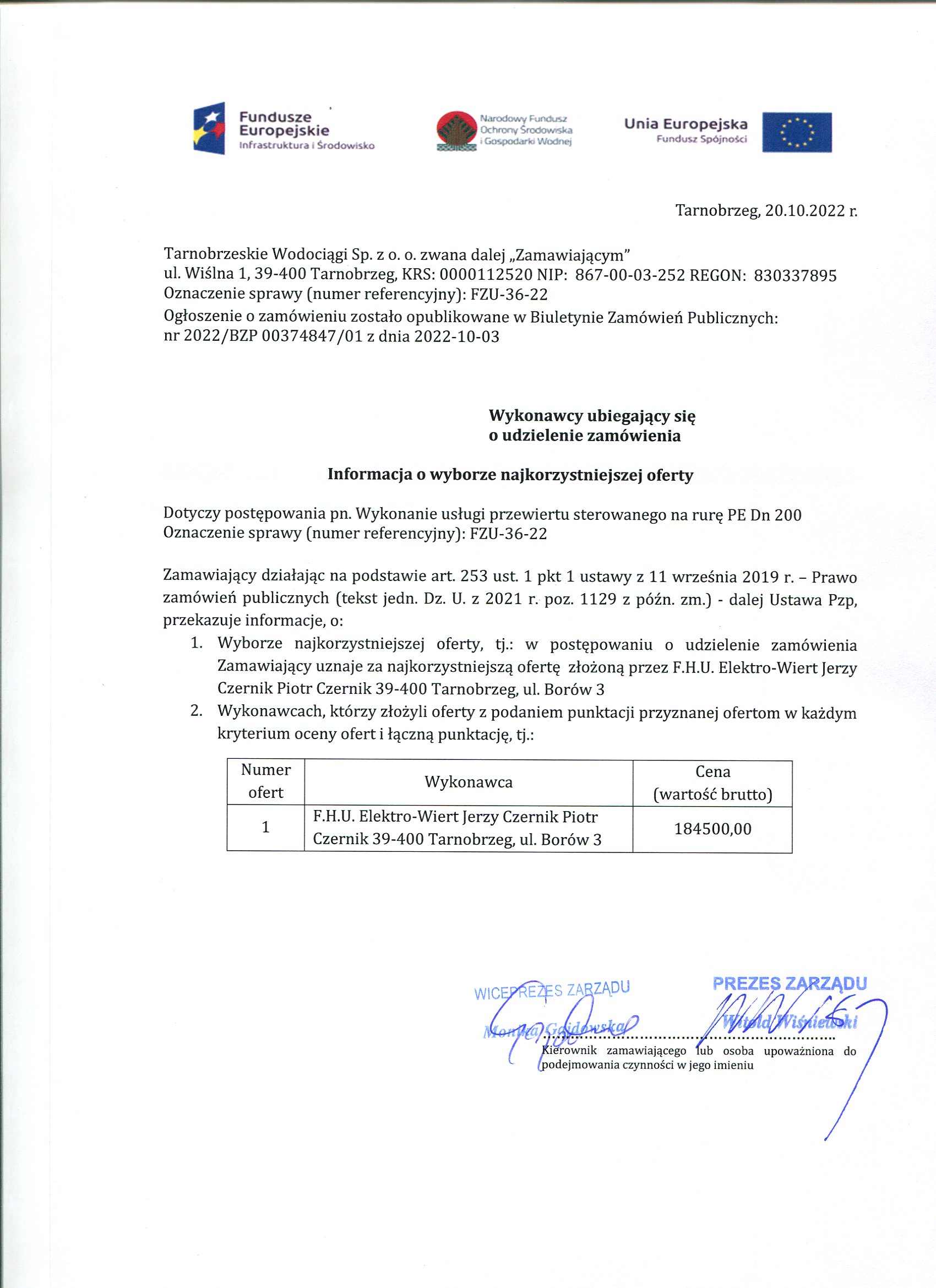 - informacja o wyborze oferty: FZU-36-22 informacja o wyborze oferty