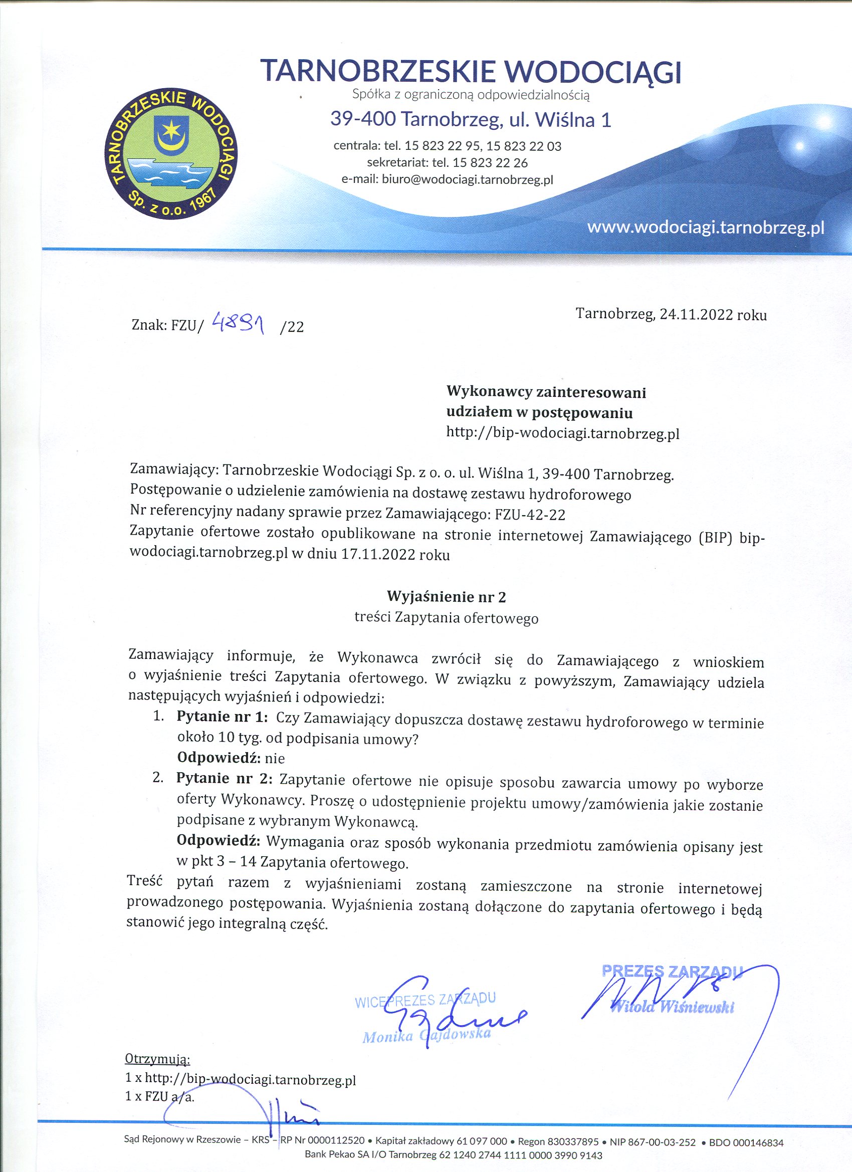 FZU-42-22 Wyjaśnienie treści zapytania ofertowego - nr 2