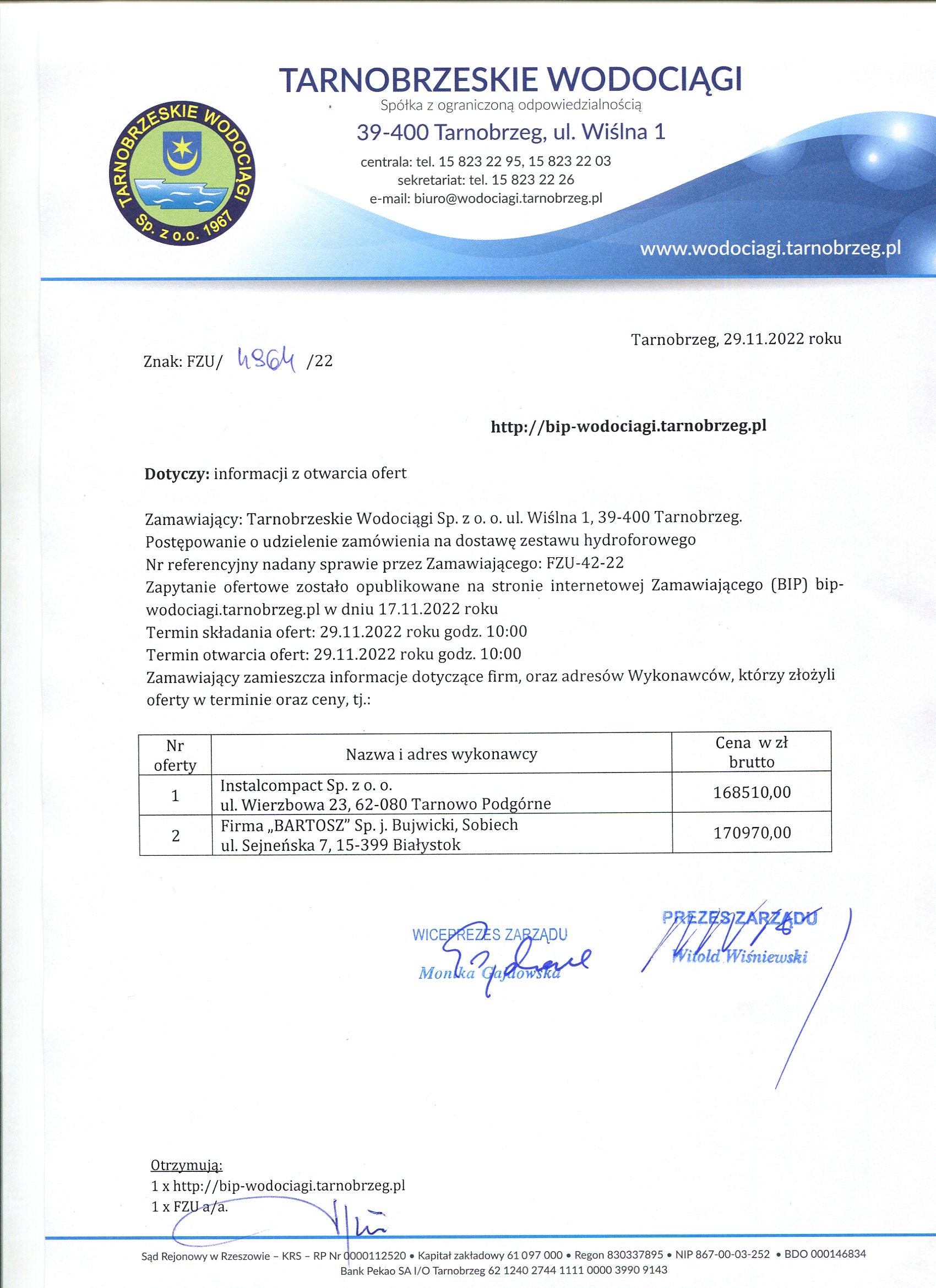 - Informacja z otwarcia ofert: FZU-42-22 Informacja z otwarcia ofert
