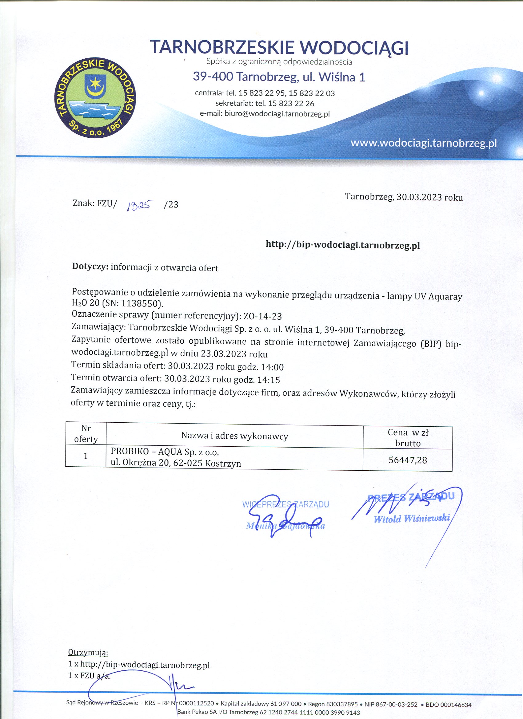 - Informacja z otwarcia ofert: ZO-14-23 Informacja z otwarcia ofert