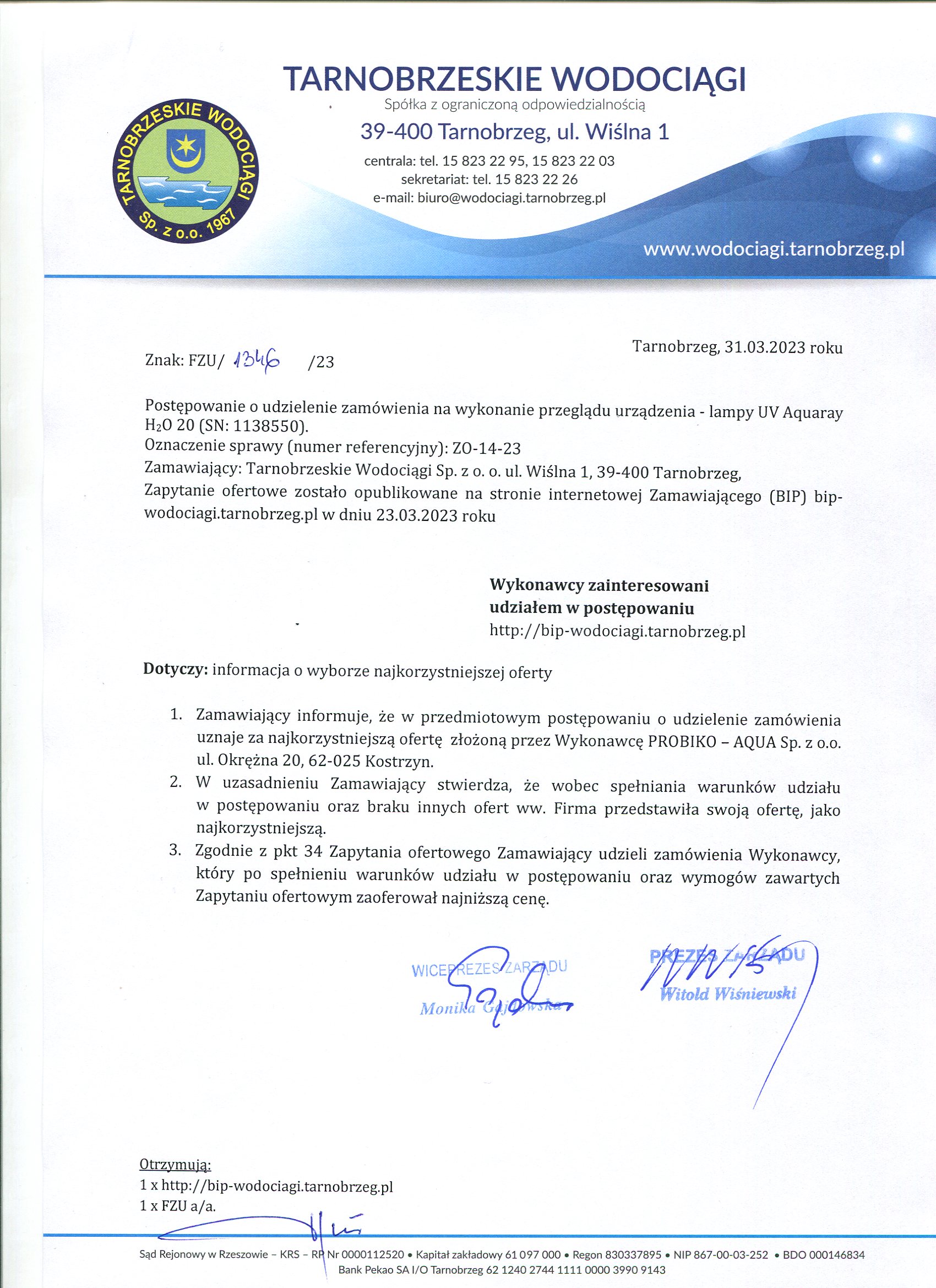 - Informacja o wyborze oferty: ZO-14-23 Informacja o wyborze oferty