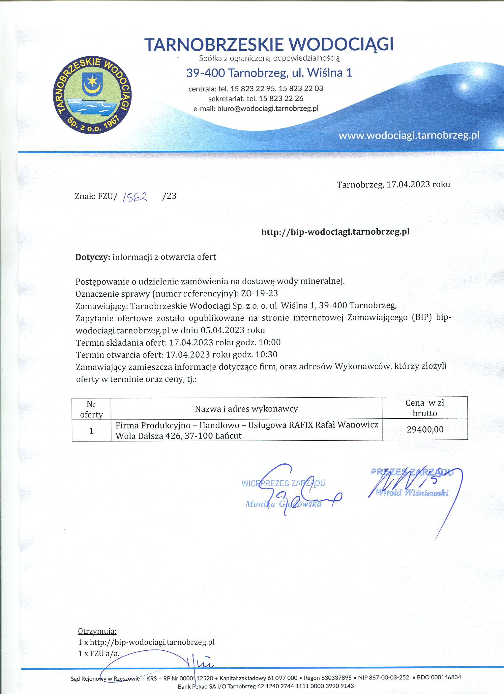 - Informacja z otwarcia ofert: ZO-19-23 Informacja z otwarcia ofert