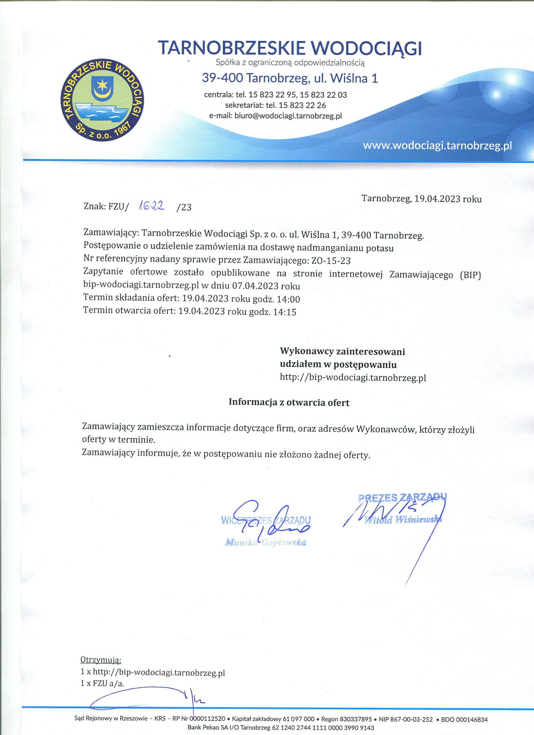 - Informacja z otwarcia ofert: ZO-15-23 informacja z otwarcia ofert