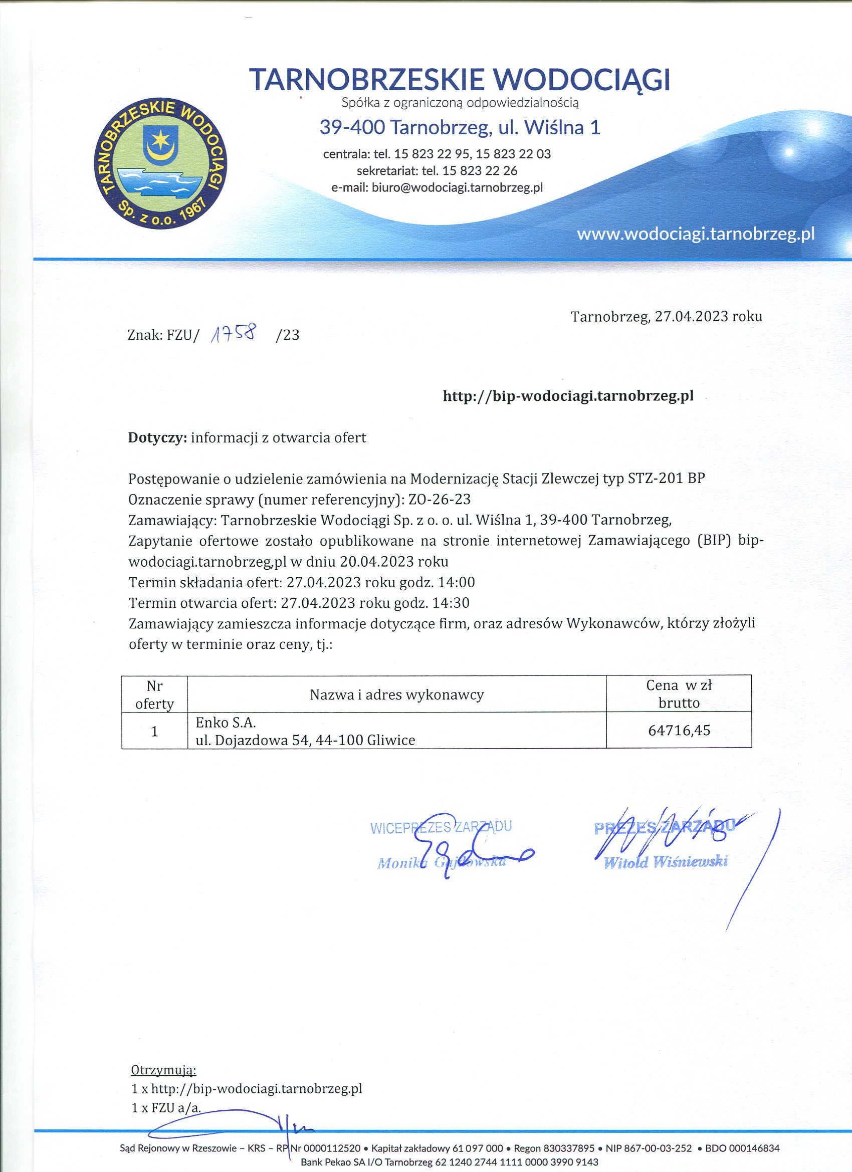 - Informacja z otwarcia ofert: ZO-26-23 Informacja z otwarcia ofert