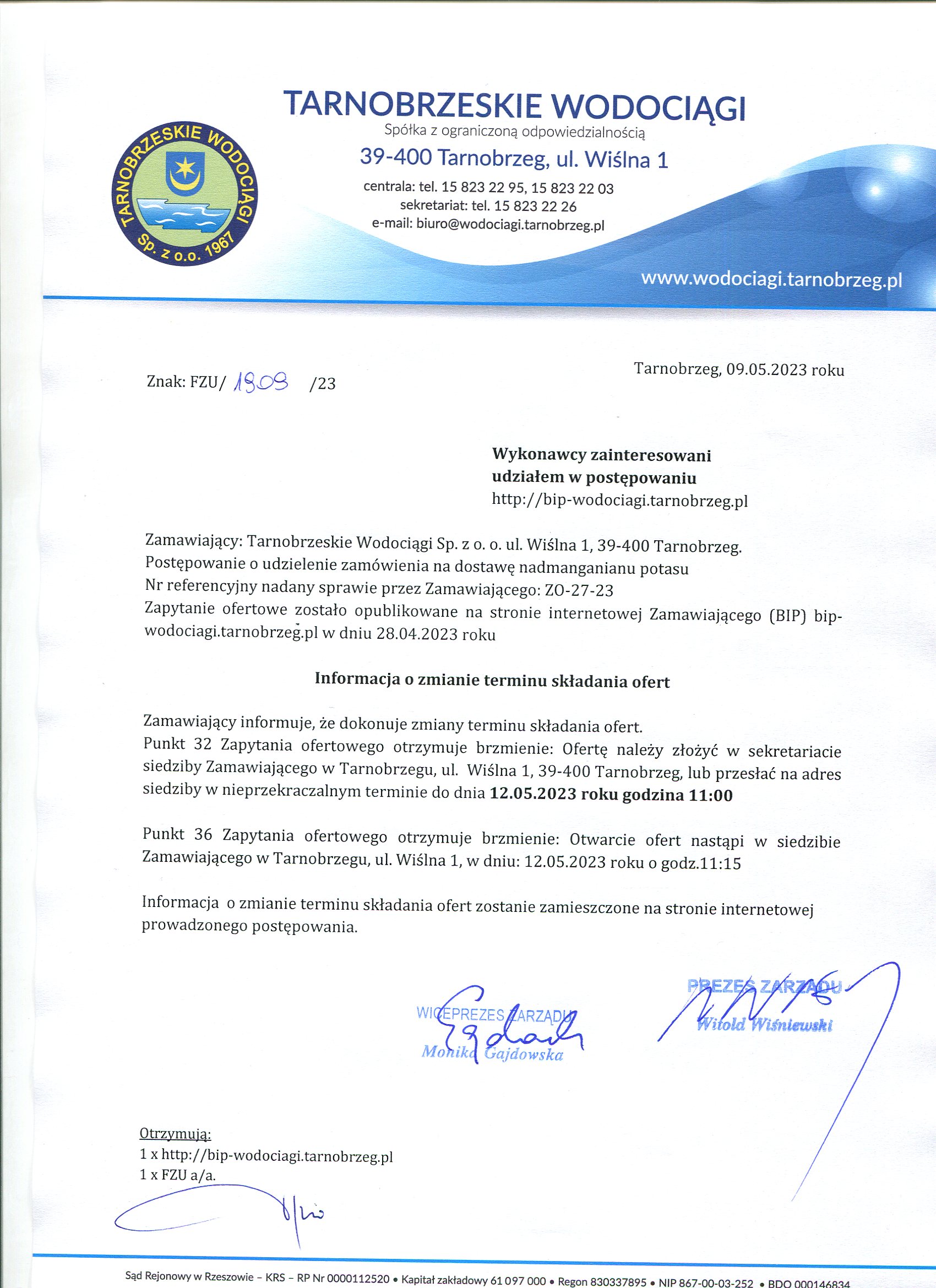 - Informacja o zmianie terminu składania ofert: ZO-27-23 Informacja o zmianie terminu składania ofert