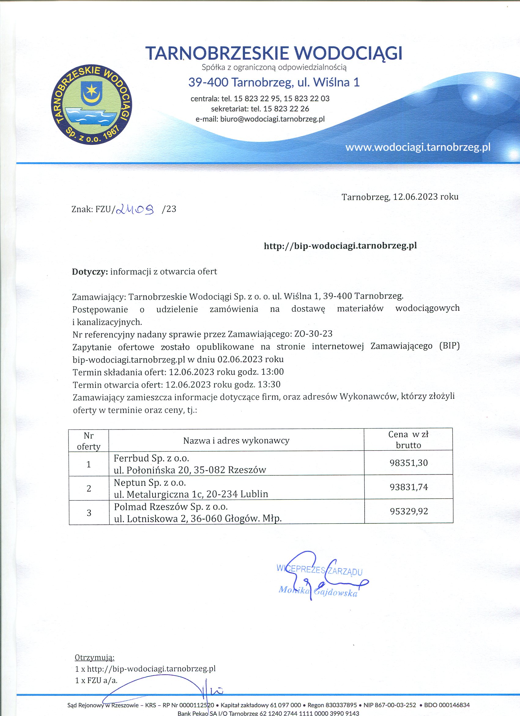 - Informacja z otwarcia ofert: ZO-30-23 Informacja z otwarcia ofert