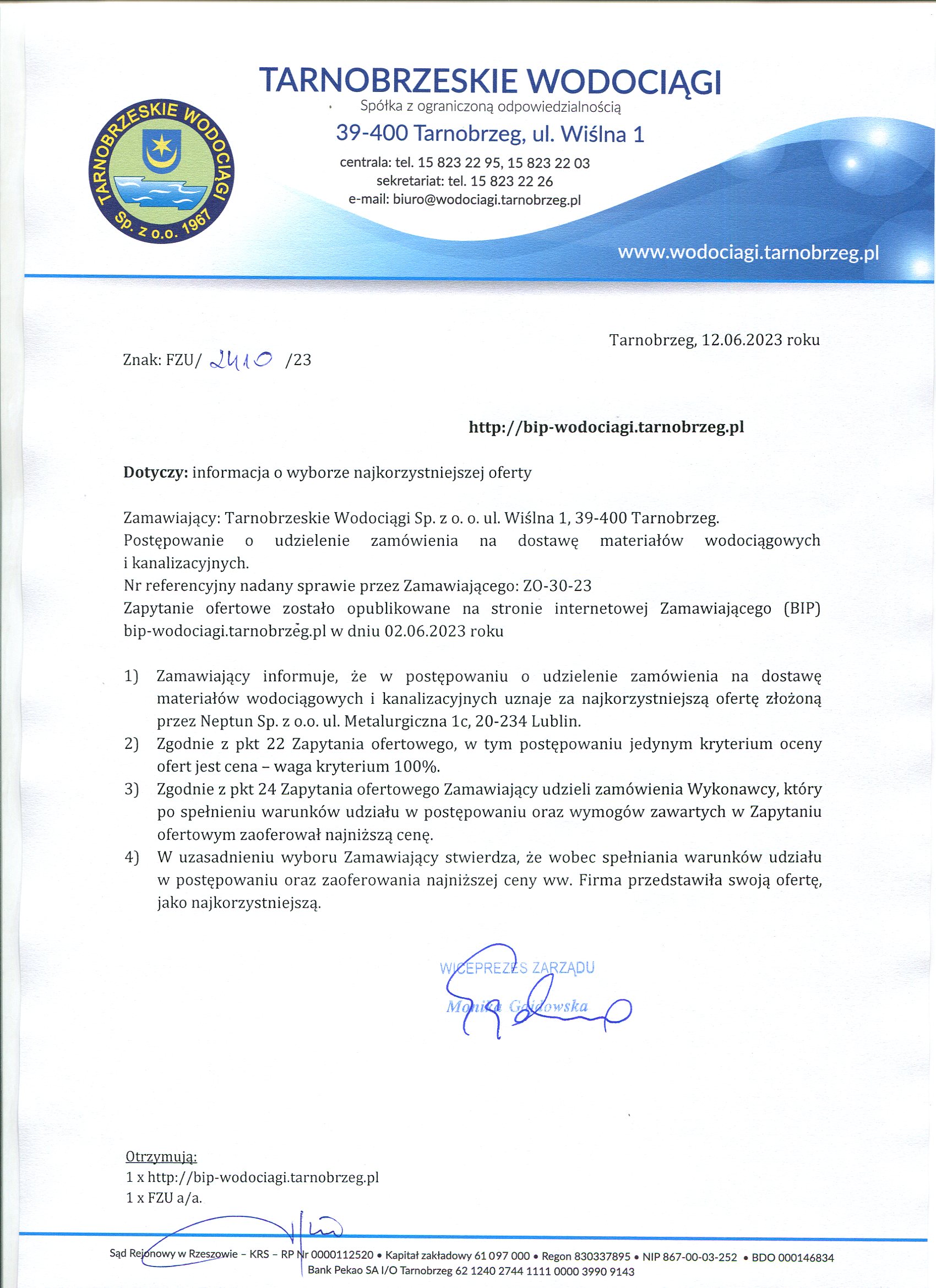 - informacja o wyborze oferty: ZO-30-23 informacja o wyborze oferty